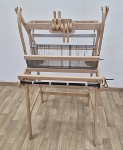 Несмотря на свои размеры станок имеет прекрасные возможности для выполнения многочисленных видов изделий. Заправочная ширина 60 см позволит вам соткать как тесьму и этнографическую ткань, так и более широкие проекты. Наличие четырех ремиз расширяет возможности вашего творчества от простых полотняных полотен и половиков до огромного числа четырех ремизных тканей таких как многочисленные саржи : полоски, ромбы, елочка; гусиные лапки , вафли и множество других. Независимый механизм поднятия ремиз Контрмарш позволяет заправлять как двух и четырех ремизные так и трех ремизные ткани, а профессиональные стальные галева гарантируют удобство и легкость заправки и превосходную открываемость зева, высота которого составляет около 10 см.