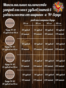 Материал: зубья бердо бук, каркас бердо - фанера;
