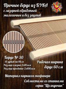 Бердо ткацкое /Стандарт тип 2/ (рабочая ширина - 60 см, плотность #30, дерево)